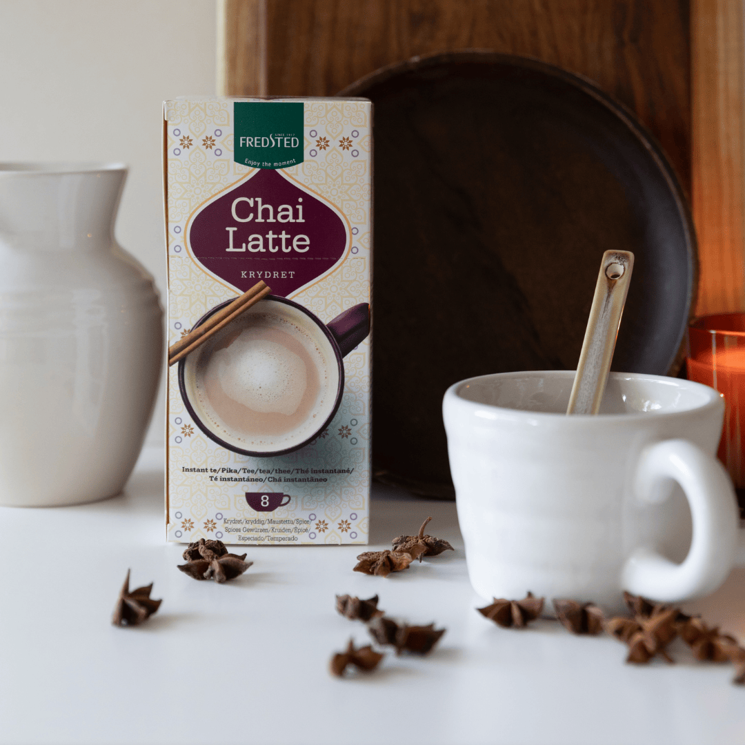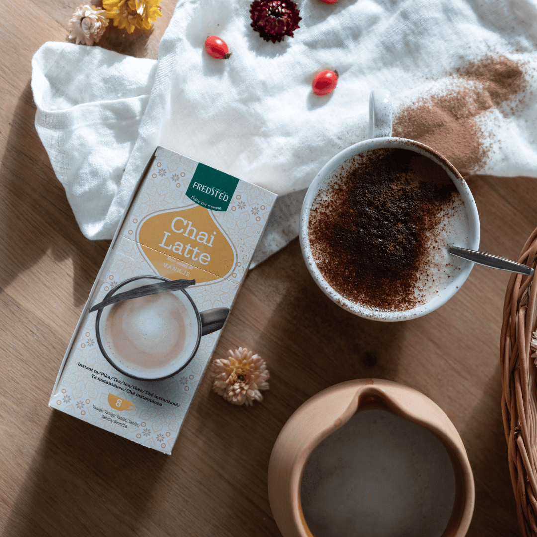 Opplev en varm og aromatisk smaksopplevelse med Fredsted Chai Latte Vanilje en perfekt balanse mellom krydret te og myk vaniljesødme.