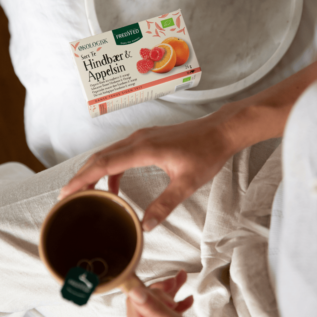 Fredsted Bringebær & Appelsin byr på en fruktig og forfriskende smaksopplevelse der solmodne bringebær møter frisk appelsin. Teen har en livlig smak med både sødme og syrlighet som gjør at den passer like godt varm på kalde dager som iskald iste på sommeren.